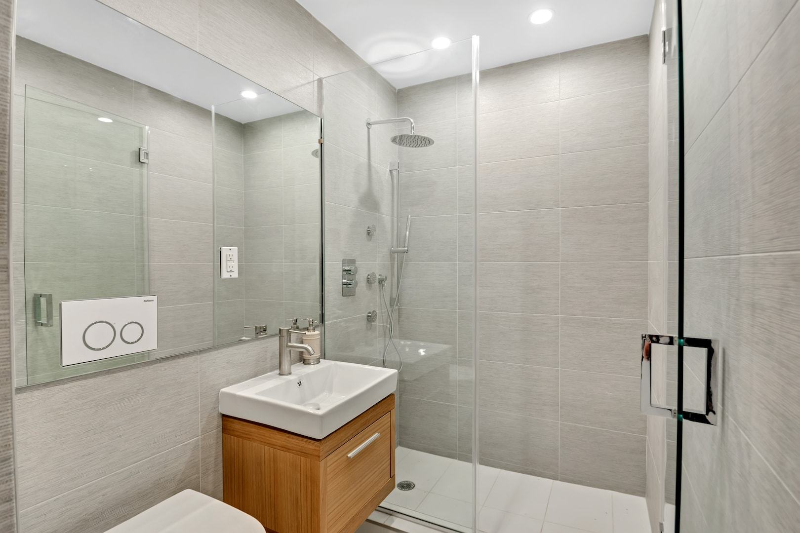 Inside Gilded Green there are seven intimate, one-bedroom residences grounded by one grand two-bedroom duplex for those who want to live the townhome life. Each residence takes advantage of the abundant natural light through floor to ceiling glass showcasing satin stained natural, wide-plank, white oak floors and the two penthouse apartments enjoy expansive Manhattan views. All but one unit has its own private outdoor space but the common roof deck affords you the additional opportunity to sunbathe, see the July 4th fireworks with all of your friends and take in the full Manhattan skyline.