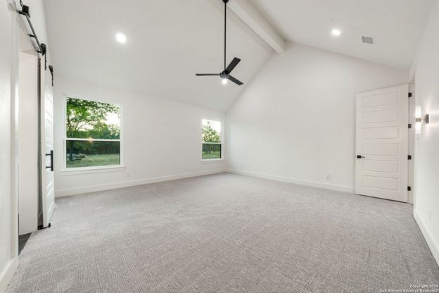 Welcome to your dream retreat nestled in the serene landscapes of a gated community, where contemporary sophistication merges seamlessly with the rustic charm of the hill country. Step into luxury as you enter this brand-new construction home complete with top-of-the-line hardware, finishes and stainless steel appliances. The open floor plan invites you to explore two expansive living areas, perfect for entertaining guests or simply unwinding with loved ones. Situated on a one-acre lot, this property boasts the tranquility of mature trees offering shade and privacy. Ample parking is provided by a spacious three-car garage, accompanied by a separate garage/workshop space, ideal for storing outdoor equipment or pursuing your hobbies. High ceilings throughout the home create an airy atmosphere, while front and back porches offer inviting outdoor spaces to enjoy the natural beauty that surrounds you. Don't miss the opportunity to make this stunning property your own retreat from the everyday hustle and bustle.