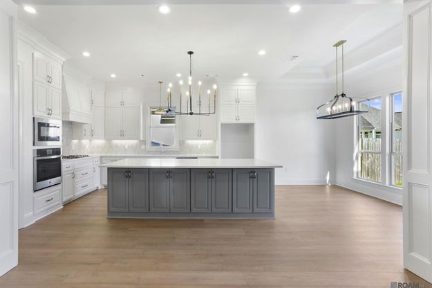 Pro One Corp Custom Home in the highly sought-after Meadows at Oak Grove subdivision. Ideally located near Airline Highway, shopping, dining, and schools. This beautifully designed home showcases upgraded light fixtures and a stunning coffered ceiling in the spacious living area. The kitchen is a chef’s dream, featuring abundant storage cabinets, a large island, stainless appliances, and a convenient pot filler above the stovetop. The primary bathroom includes a multi-head shower with built-in seating, a freestanding tub, and dual vanities. Step outside to a covered back patio complete with ceiling fan, lighting, and a fully equipped outdoor kitchen with a gas grill—perfect for entertaining. This home combines comfort, style, and functionality.