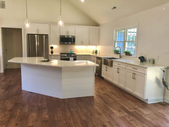 If you are looking for a comfortable home that feels luxurious, and is Carefully planned out, then look no further. The home offers 2500 ft.² of living space on a private 1 acre lot yet is conveniently located within a short driving distance to area beaches, restaurants, shopping, churches, schools, and the hospital. This four bedroom 2 1/2 bath home offers a 23 x 23 attached garage. The main living area has a vaulted ceiling and accent wall. The living spaces have cortex vinyl, Hydro plank, flooring and marble tiled baths. The kitchen features a center island with a granite countertop. There are custom white shaker cabinets, a tiled, backsplash, and stainless-steel appliances. The primary bedroom is privately offset to one side of the house away from the guest bedrooms. The primary suite features a walk-in closet and custom bathroom with a tiled, walk-in shower and double vanity for convenience. The powder room is accessible right off of the garage as well as the laundry room. On the opposite side of the home, you will find all three of the roomie guest bedrooms with generous closet, space and a shared hall bath. If you need an office or den one of the four bedrooms could accommodate. The main room has sliding glass doors from the living space onto a private rear deck. There is plenty of room for a swimming pool, shed, playset... and loads of privacy