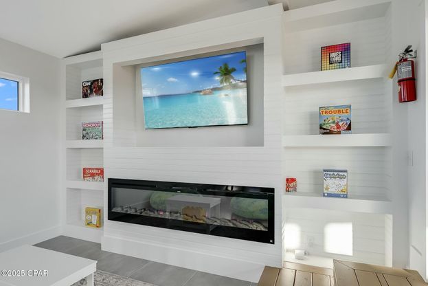 UNDER CONSTRUCTION- Completion Estimated By March 2026. Luxury 5BR/5.5BA Beach Home! Sleeps 18, Gulf Views, Rooftop Entertainment Deck with No HOA This brand-new 2,904 sq. ft. custom coastal retreat is perfect as a high income producing short-term rental or personal beach haven. Just two blocks from the white sugar sands of Laguna Beach, this 5-bedroom, 5.5-bath home comfortably sleeps 18 guests and showcases Gulf views from its expansive 880 sq. ft. rooftop deck-complete with a heat/cooled entertainment room, wet bar, full bath, and fireplace fit for an 80'' TV. Interior features include custom accent walls, hardwood flooring, porcelain tile, custom bunk beds, solid 8ft' core doors, and fully tiled bathrooms with quartz vanities and glass shower enclosures. The chef's kitchen offers dual refrigerators, farmhouse sink, quartz countertops, and stainless appliances. Built for comfort and durability with spray foam insulation, hurricane impact windows/doors. Enjoy a heated pool, outdoor shower, and garage with HVAC. Additional luxuries: 2 electric fireplaces, custom shelving, built-in 80'' media centers, media closet, and high-end lighting/chandeliers throughout. Located in Panama City Beach's West End-close to 30A and world-famous beaches-this home has no HOA, professional landscaping, paver parking, and rental projected at $175K annually. A rare, turn-key luxury offering just a golf cart ride from paradise. Photos from previous build with Downtime 850 LLC. Please note: All photos are from a previous build by the same builder and are intended for illustrative purposes only. Final finishes, layout, and design elements may be subject to minor modifications.