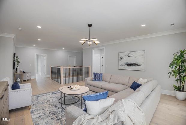 Luxurious Walkout Basement Home in Chapel Ridge. Stunning L2 plan with an 850 sqft finished walkout basement featuring 4 bedrooms, 3.5 baths, and a spacious open layout. First-floor primary suite offers main-level living convenience, while the second floor includes 3 bedrooms and a large loft-perfect for additional living or work-from-home space. The chef's kitchen features cabinets boxed to 10-ft ceilings, stainless steel Bosch appliances, and an oversized island ideal for entertaining. Hardwood floors throughout main living areas with carpet in all bedrooms. Enjoy a side-entry 3-car garage and a private homesite overlooking the scenic pond on hole #18, a par-5 on the Fred Couples-designed championship golf course. Located in Chapel Ridge, with access to top-tier amenities including pool, clubhouse, fitness center, pickleball, tennis, volleyball, basketball, and a soccer field. Note: Some features shown in renderings may be upgraded options not included in the current list price.