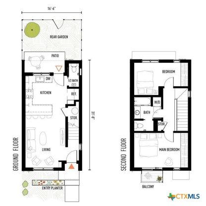 Reach out to walk through a furnished unit with us today! Finished interior photos coming soon. Lively Lane is a pocket neighborhood of contemporary townhomes located in the heart of San Marcos. Its convenient location makes it possible to own a new home in town and not miles away from the city center. High quality standard specifications and professionally managed condominium association support lock-and-leave convenience for a modern lifestyle. New homes completed in 2025 at Lively Lane are Energy Star(R), EPA Indoor AirPlus, and Department of Energy Zero Energy Home Ready (ZERH) rated. The neighborhood is near a multitude of walkable services and even more essential destinations by bike. That means that sustainability comes standard, and - for those that want to do more - add-ons are available including solar packages, solar carport, and electric vehicle chargers. Other standard features include interior finishes like hardwood flooring, quartz kitchen and bath countertops, vaulted top floor ceilings, Daikin Smart Thermostats, GE and GE Profile appliances with induction range included, heat-pump air conditioning and water heaters, Pella casement windows, advanced framing techniques, native landscaping, a permeable paver system, and so much more. Lively Lane has also partnered with a neighborhood exclusive carshare service, available to residents and guests. The Clever Townhome is a sensible home designed to provide for daily necessities in a cozy two-floor layout. Living and kitchen activities situate downstairs away from the quiet of the bedrooms above. Vaulted ceilings and a main bedroom balcony open up the second floor; and a full bath maximizes functionality with a separate toilet closet and integrated washer/dryer. A welcoming entry planter and rear patio create opportunities to test your green thumb and relax outdoors. 102 and 104 Lively Lane models include a larger private, fenced rear garden. Dreaming of this townhome? Aren't you Clever.
