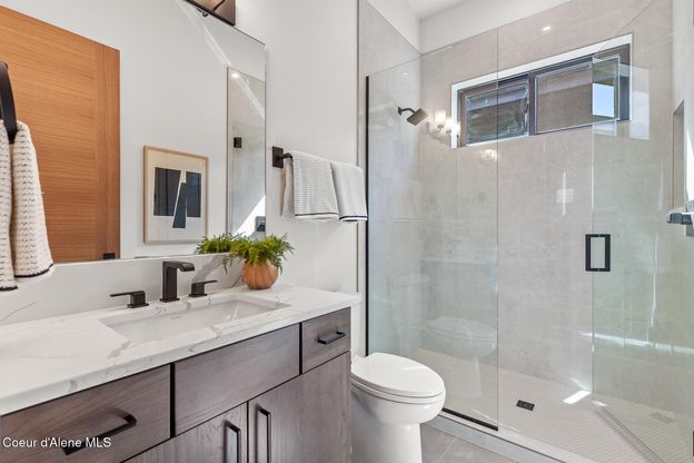 Introducing Coeur d'Alene's newest and hottest neighborhood - Atlas Waterfront! Experience the epitome of luxury living in this stunning custom home that boasts exceptional craftsmanship and exquisite design. With 2717 square feet of living space, this new construction offers two master suites, each with its own private bathroom. Enjoy multiple family areas, each with its own unique ambiance and charm, creating the perfect setting for relaxing or entertaining guests. The kitchen and great room concept is a must-see, featuring top-of-the-line appliances and finishes that are sure to impress even the most discerning home buyer. Take a short jaunt to the river and waterfront trails, where you can enjoy scenic views and outdoor activities.