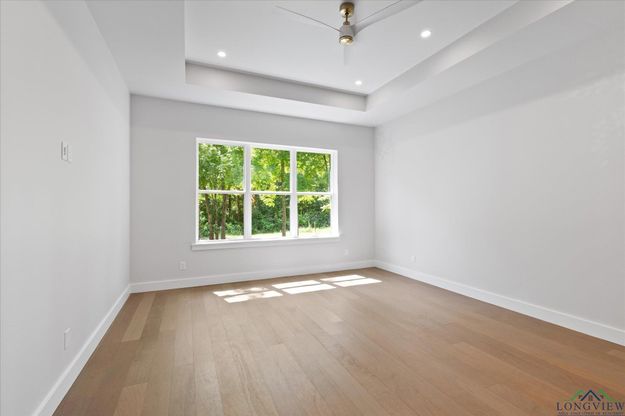 Step into unmatched sophistication with this stunning new construction luxury home, masterfully crafted by the Hamilton group, Longview’s Most Awarded Builder. Nestled in an exclusive wooded neighborhood, this 4 - bedroom, 3 -bathroom residence effortlessly blends high design with nature-inspired tranquility. From the moment you enter, you are greeted with sleek, high end finishes that dazzle at every turn - soaring ceilings, expansive windows framing forested views, custom cabinetry, designer lighting, and wide-plank hardwood floors. Every surface, fixture, and material has been thoughtfully selected to evoke both modern elegance and timeless comfort. The open concept living space is anchored by a gourmet kitchen boasting waterfall quartz countertops, professional-grade appliances, and a seamless connection to the dining and living areas - perfect for entertaining or quiet evenings at home. A wall of glass doors open to a private outdoor living area further enhancing the home's "outdoors in" design philosophy. The spacious primary suite is a true retreat complete with a spa inspired bath, soaking tub and walk-in rain shower. Additional bedrooms offer flexible space for guests, office or fitness. With a 3-car garage, smart home features, and meticulously landscaped surroundings, this residence redefines luxury living in harmony with nature. Don’t miss your opportunity to own this architectural masterpiece in one of Longview‘s most coveted settings.
