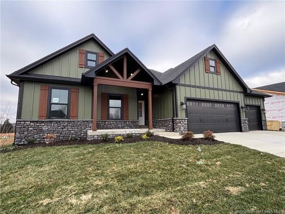 ASK ABOUT OUR RATE BUYDOWN AND NO CLOSING COSTS OPTIONS. *Estimated Completion Date is Late November* This Laurel Plan features a large, covered front porch with stunning stained trim. This 4-bedroom, 3-bath home with 2,406 sq. ft. offers an open floor plan, split bedrooms, a first-floor master suite, and a FULL basement! The spacious living room boasts 9' ceilings and abundant natural light. The striking kitchen showcases ALL WHITE CABINETS, stone countertops, stainless steel appliances, and a pantry. The Craftsman Trim Package includes accent walls in the foyer and master bedroom, plus built-ins in the mudroom and a folding table in the laundry. Black plumbing fixtures and coordinating lighting add a stylish finish. The primary bedroom features two large windows and a barn door, leading to a suite with dual sinks, a tile shower, linen closet, natural light, and a LARGE walk-in closet with built-in shelves for extra storage. Stained beams in the Master Bedroom add warmth and character, while built-ins in the laundry and mudroom enhance organization and functionality. The finished basement offers a large family room, a fourth bedroom, a third full bath, and extra storage. Completing the home is an attached two-car garage, over 23' deep — perfect for most trucks! SMART ENERGY RATED. Sq. ft. is approx.; if critical, buyers should verify. LOT 229