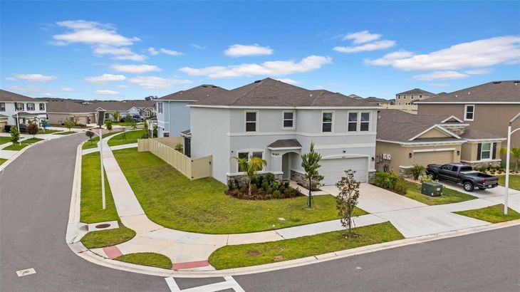 One or more photo(s) has been virtually staged. Welcome home to the highly sought-after Epperson Lagoon Community, where this beautiful home offers enough space inside and outside with a big backyard and privacy fence. This two-story all concrete block constructed home features a well-appointed kitchen that overlooks the living and dining areas and flows outdoors to a covered lanai. The flex space at the front of the home and a guest room and full bath off the living area complete the first floor. Upstairs, Master Bedroom is complete with an ensuite bathroom and offers tons of space. Two additional bedrooms, a second full bath, and a laundry room surround a large bonus room, perfect for work or for play. Open kitchen floorplan with modern cabinets, granite countertops, stainless steel appliances, and a pantry. This home comes with an installed range, microwave, and built-in dishwasher. Additional upgrades included - window blinds, light fixtures, screened lanai and the back yard fence. Refrigerator, Washer, Dryer, Water Softener + RO and furniture are not included, but may be purchased separately. The Epperson community is part of the Connected City, showcases ULTRAFi, a community-wide gigabyte internet and cable experience, Streetleaf solar street lights, golf cart paths, trails, dog parks and green spaces. This growing area also has the sought-after Kirkland Ranch Academy of Innovation and Innovation Preparatory Academy schools while close to the shopping and dining of the Tampa Premium Outlets and The Shops at Wiregrass. Approximately 35 minutes north of Downtown Tampa, 45 minutes from Tampa International Airport and just above an hour from Disney World, Orlando.