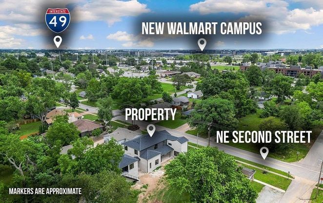 Experience modern luxury living in the heart of downtown Bentonville with this stunning new construction home, designed for comfort and entertainment with seamless indoor/outdoor flow. Boasting 20 foot ceilings, open living spaces filled with natural light, and luxury finishes throughout, this home features a gourmet kitchen with custom rift sawn oak cabinetry, high end appliances, a wine and beverage fridge, ice maker, and walk-in pantry. Enjoy the flexibility of an executive office, bonus entertaining room or bar, spacious bedrooms with walk-in closets, and a garage apartment with a separate entry, perfect for a short-term rental or next gen living. Large yard big enough for pool & entertaining space. Located steps from the new Walmart Home Office, AWSOM Medical School, Crystal Bridges, and a vibrant community filled with restaurants, shopping, and entertainment, this is your chance to live the downtown lifestyle. Schedule your tour today!