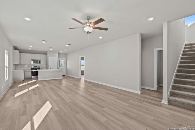 Welcome to the King Plan! This beautiful two-story home offers 1,808 sq. ft. of living space with 3 bedrooms and 2.5 baths in a bright, open, and modern layout. You'll love the low-maintenance lifestyle and energy-efficient features this home provides. The kitchen is a standout, featuring a large island, 42" cabinets, 9-foot ceilings, solid granite countertops, and stainless steel appliances. Step outside to a covered patio-perfect for enjoying the Texas heat in comfort. The spacious primary suite includes a large bedroom, a generous bathroom, and a walk-in closet. Located on a lot with an easement on the back, this home offers added privacy and is close to the community amenity center. Come visit today and discover all that the Garden Grove community has to offer!