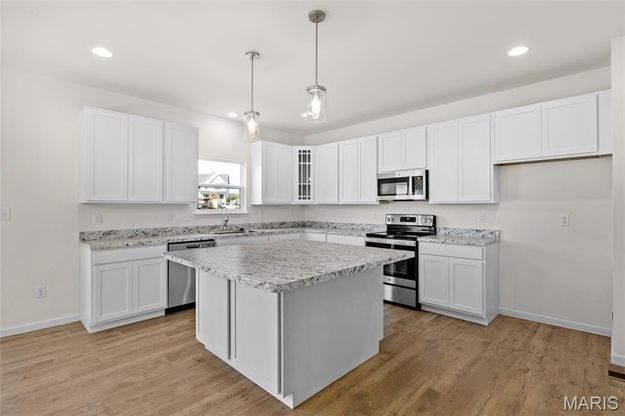 Introducing the brand-new Nottingham 2-story home by McBride Homes, w/4BR, 2.5BA is ready now! This beautiful home offers a 3-car garage, 9’ ceilings, 6’ windows, & upgraded wood laminate flooring throughout the main level. The kitchen is a showstopper with quartz countertops, 42” Benton Painted White base cabinets, a center island with a breakfast bar, and stainless-steel GE appliances. Perfect for both relaxing and entertaining, the home also features a spacious great room with a wall of windows, along with formal living and dining rooms off the welcoming foyer, plus main floor laundry. Upstairs you’ll find the primary suite which offers a spacious walk-in closet, separate shower, and large tub, with three additional bedrooms, hall bath and a loft. Dual zone HVAC! Hawk Ridge offers beautiful new homes in Lake St Louis near restaurants & entertainment! Enjoy peace of mind with McBride Homes’ 10 year builders warranty & incredible customer service! Similar photos shown.