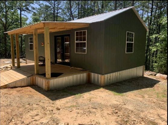 New built 16x32 cabin on 5 acres in the Kiamichi Wilderness. This is a one bedroom one-bathroom cabin heated and cooled with a mini split. It has Vinyl flooring throughout with custom built wood doors and custom built in bunk beds. In the kitchen there are wood kitchen cabinets with a wood counter top. The cabin is powered by a generator and also has hookup for a solar generator. The ceiling has R19 insulation and R13 in the walls. The whole cabin was wrapped in a vapor barrier using Tyvek wrap. There is a covered front porch 8x16 and a covered back deck 8x16 for enjoyment of the outdoors. Complete with a 275-gallon septic tank and a gravity fed water tank for use in the bathroom and kitchen that provides plenty of water pressure. There is no well but you could set up a rain catchment, currently the water is hauled in. The kitchen faucet and bathroom faucet are usb powered water faucets. There is a ramp off from the front porch and French doors for use in parking ATV's inside the cabin to store while away. The property touches a larger parcel of over 4000 acres and has some beautiful views of the wooded mountain forest. There is a deer feeder and hunting blind that can stay. Enjoy fishing for perch or catfish at Shorty creek that is just down the road. Embrace the privacy and serene tranquility of the forest and all that this wonderful property has to offer.