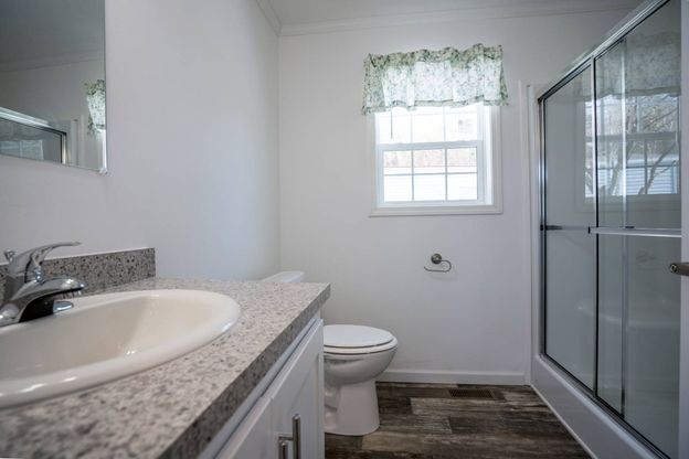 Welcome to our Community's Newest Home. With our innovative design and affordable pricing, this home is attainable in making homeownership your reality. The home boasts a classic charm throughout without skimping on the modern conveniences. The distressed floors provide warmth and texture pairing beautifully with the white classic cabinetry throughout the home, reflecting a timeless appeal. The stainless-steel appliances in the kitchen (including a dishwasher) adds a touch of elegance, while the in-unit laundry hookups provide convenience and saves you time. With off-street parking available for 2 cars, you'll never have to worry about finding a spot. The outdoor common area is perfect for enjoying the fresh air and taking in the scenic views of the pond and bridge. The proximity to shopping, restaurants and local highways makes this location an ideal choice. Additionally, some of the amenities include trash and recycling service, on-site management, common road snow removal and security to ensure a hassle-free living experience. Don't miss out on this amazing opportunity to make this new home yours at an affordable price, saving you money without sacrificing quality of life. Contact us today to schedule a viewing and start your journey to homeownership now in our welcoming community. Carriage Mobile Homes, Inc.... a Beautiful Place to Live!