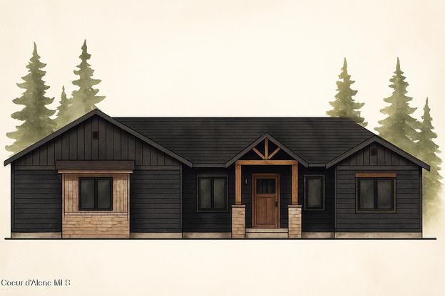 Located in a gated community in Blanchard, Idaho, this 2,252 sq ft home sits on a 5-acre corner lot and blends comfort, space, and scenic surroundings. The open-concept layout features a vaulted great room with a fireplace and connects seamlessly to the kitchen and dining areas. The primary suite includes a walk-in closet and en suite bath with dual vanity. Two additional bedrooms share a Jack and Jill bathroom with dual sinks and a private toilet room. A mud/laundry room, covered front entry, and covered back porch offer year-round functionality. Nestled near Hoodoo Mountain and Mount Spokane, this home is just minutes from state land for hiking and wildlife watching. Enjoy nearby recreation at Stoneridge Resort and Golf Course or unwind at Lake San Souci and Blanchard Lake. Finishes and layout are subject to change during the course of construction at the builder's discretion.