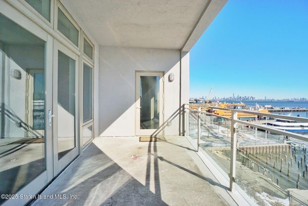 Luxury lifestyle with waterfront views awaits you with this prime location in ''The Accolade at Bay Street Landing.'' Enjoy 13 acres of serenity. Behind the guard controlled gated community, enter The Accolade unit 4B the best value in the building. The most desirable (B) line of the building features two bedrooms, two and one half baths. An impressive 1600 square feet with a private terrace. This unit has soaring ceilings and an abundance of natural light. This condo, with its calming NYC skyline to Verrazano Bridge views and its open floor-plan, allows you to enjoy this setting from every angle. It has been exquisitely maintained with fully refinished hardwood throughout. The kitchen has light blonde cabinetry, all stainless appliances, an island, all quartz counter-tops and an adjoining pantry. The master suite features a private bath with marble vanity, jacuzzi tub, stall shower, walk-in closet and door to terrace. The second bedroom suite features a private bath and 2 large closets. Building amenities feature parking included, EV charger, secured doorman, intercom, lounge, fitness center, children's playground, barbeques and postal service. It is the premier waterfront property on the emerging north shore of Staten Island. 5 minutes to the SI Ferry, New York fast ferry and Empire outlet mall. New promenade coming.