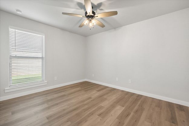 Buy NOW and get up to $14,000 Use-It-Your-Way Cash! This beautiful home features a brick exterior complemented by a stone and cedar-accented front tower, creating a striking first impression. Inside, luxury vinyl plank flooring flows through the open-concept kitchen, living, and dining areas. The kitchen boasts granite or quartz countertops, a spacious island with bar seating, stainless steel appliances including a double oven and built-in microwave cabinet, and a large pantry. The oversized utility room provides ample counter space and storage. A cozy brick fireplace enhances the living room. The secluded master suite offers a garden tub, walk-in shower, his and hers vanities, and an oversized walk-in closet with access to the utility room. A private guest bedroom with its own bathroom and a covered back patio complete this home. Premium plumbing and lighting fixtures throughout.