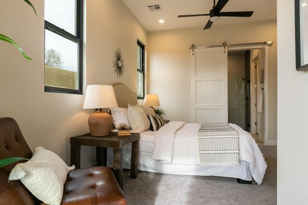 Nestled in the picturesque North Valley, this award winning property by Las Ventanas Homes offers a rare opportunity live in one of the city's most desirable areas. Tucked away off Los Rancho's new 4th street revitalization project, their newest property provides a perfect location that blends tranquility and convenience. Just over 1700 square feet with three bedrooms and two baths, boasting all the finishes and unwavering quality you have come to expect including a NM Green Build Gold certification. The home is situated on an oversized lot perfect for constructing a casita (an ADU)...and Las Ventanas has a plan ready for you!! This home embraces the best of rural charm and urban amenities with nearby trails and fantastic dining. Ready for quick move in!!