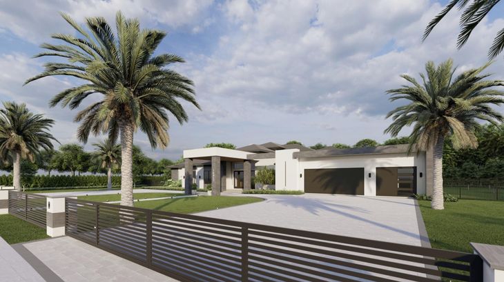 Step inside this exceptional 2025-built modern one-story estate in Wellington, where elegance meets contemporary design. Behind impressive double doors, you'll find 5 spacious bedrooms, 6.5 luxurious bathrooms, a private office, and a 3-car garage. The open layout is thoughtfully designed with exquisite finishes and expansive impact windows that frame stunning views of the lush backyard. At the heart of the home is a gourmet kitchen with premium Dacor appliances, a gas cooktop, and custom cabinetry, ideal for daily living and entertaining. For comfort and efficiency, the estate includes three central A/C units, an instant hot water system, and a well water irrigation system. Connected to city water and sewer, this home offers added convenience with no septic maintenance required.