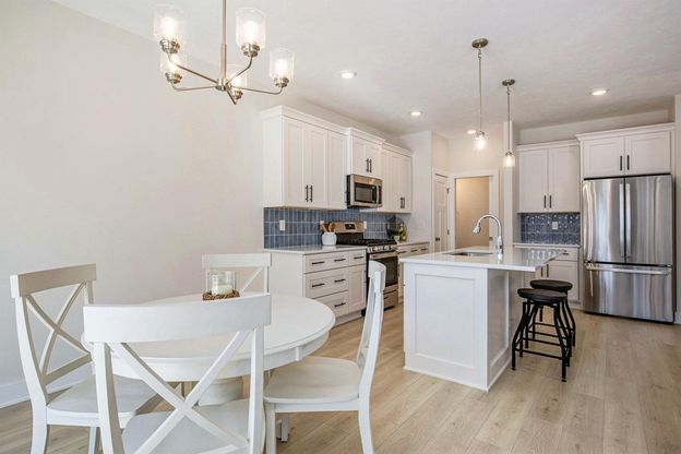 New condo - ready for immediate move-in! This spacious 1,800 sq. ft. townhome-style condominium features 3 bedrooms, 2.5 bathrooms plus an attached 2-stall garage. The main level has an open floor plan with luxury vinyl plank floors flowing from the foyer through the living room, kitchen and dining area. The kitchen includes quartz countertops, tile backsplash, and a complete kitchen appliance package. The sliding glass door off the dining area leads to a 10x10 patio. Upstairs, you will enjoy 3 bedrooms, 2 full bathrooms plus the laundry room and storage. Enjoy community amenities including an outdoor pool, multiuse clubhouse, tennis court, and playground.