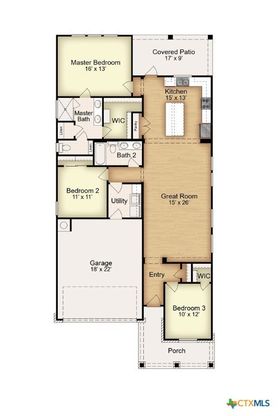 The Bellaire floor plan offers a suitable living space with three bedrooms and two bathrooms across 1,565 square feet. It provides a spacious open-concept layout across the family room, dining, and kitchen, making it ideal for living and entertaining. The kitchen includes stainless steel appliances and a large pantry with ample storage space, while the primary suite has dual vanity sinks, a private water closet, and a spacious walk-in primary closet. Relax in the spacious primary suite, then enjoy beautiful Texas sunsets on the covered patio!