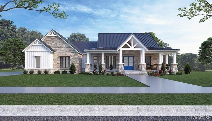 Your chance to build your dream home on 1 acre in Wildwood! This is truly a dream ranch home! Wonderful wooded lot will bring the relaxation and privacy you crave! Still time to customize! With a 46ft long covered front porch you are sure to be impressed even before you enter the front door. Beautiful stone style exterior with bat and board siding grace the entrance. Impressive interior with 10 ft high and vaulted ceilings, engineered wood floors, main level office, split bedroom plan with jack n jill bath, and walk-in closets for the secondary bedrooms and a primary bedroom wing which features main floor laundry, huge walk-in closet, and a gorgeous primary bath with corner silver tub! The kitchen features an almost 20ft long island, beautiful range hood and higher end appliances, oversized walk-in pantry. The rear covered maintenance free porch is where you will really find the solitude with 10ft ceiling and a private, wooded view. This is new construction and is to be built.