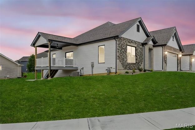 Gorgeous New Construction READY to move into Villa - last one to be built in the community - easy commute to shopping, dining & hwy access. The craftsman details plus the golf cart garage will be the envy of all of your friends! Open upscale look, good paint color, shiplap fireplace, chefs kitchen and finished lower level all in a community that offers 'carefree living'. If you love a big great room and a cozy dining area the set up allows it OR a big table works there too. Tons of custom cabinets and drawers for easy storage, granite counter tops, electric stove/oven, built in microwave, large center island with dishwasher and sink. Plenty of space to gather in and open to sit, talk and relax. Step out and enjoy your morning coffee on the covered deck - composite deck, vinyl railing, grilling patio and nice big yard to enjoy if a pet is in your plans BUT you do not have to care for it the association maintains it. Irrigation system is maintained by the association as well as the water is included. Primary suite with walk in closet, craftsman doors, ceiling fan, walk in shower & dual sinks. The second bedroom with works well for a guest room or a home office next door to it is a full bath with linen closet. If all of this is not enough the lower level offers a 3rd bedroom, full bath and rec room / family room. Full windows create a lookout for great sunlight. Plenty of storage space. This well designed and well built home - new, clean, light and bright will be the forever home you are looking for. Well sized garage - PLUS a Subdivision pool adds to the easy care resort style living. The villa lifestyle gives you freedom from most exterior maintenance, mowing and snow removal too ~ just sit back and enjoy your home!