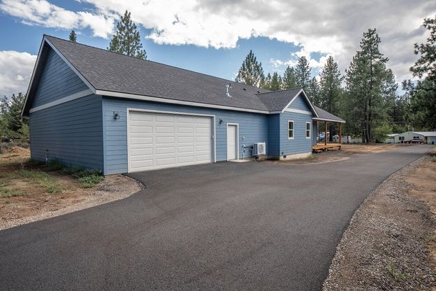 Newly constructed single-level on nearly 1 acre blends modern comfort with rural charm, just minutes from town and SW Bend's Brookswood Meadow Plaza. This 3-bedroom + office, 2-bath home features vaulted ceilings, expansive windows, and an open-concept great room filled with light. The kitchen offers solid quartz counters, breakfast bar, knotty Alder cabinets, and double door pantry. A huge laundry room with matching quartz counters provides generous storage. The primary suite includes a custom double-headed tile shower and peaceful retreat. Enjoy outdoor living on the wrap-around deck. A paved driveway offers easy access with room for landscaping, garden, or shop. Private setting near trails, shops, and dining. Adjacent .86-acre parcel at 60332 Hiawatha also available for $325,000 when purchased with this property, with water, power, and septic approval in place--build another home, add a shop, or enjoy the extra space.