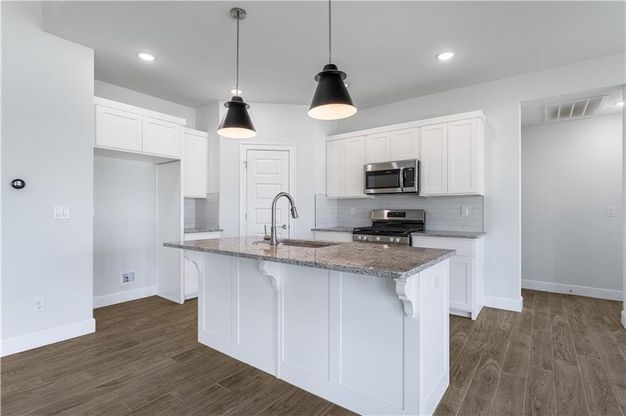 4 Bedroom open plan with lots of windows allowing a ton of natural light. There is plenty space with a large, roomy dining area and counter seating at the kitchen island. Granite worktops, stainless steel appliances, gas range, and a sizable walk-in pantry are just some of the features in this new home. Pictures are from finished home at a different location