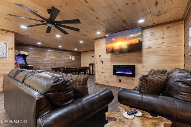 This stunning cabin, built in 2024, is nestled in the highly sought-after Wears Valley area, one of the most desirable locations near the Great Smoky Mountains National Park. Known for its tranquil beauty and year-round appeal to visitors, Wears Valley is a prime destination for vacationers seeking both seclusion and easy access to nearby attractions. With an open, spacious floor plan, soaring ceilings, and a striking stone fireplace, this cabin exudes mountain charm. It features 4 generous bedrooms and 3.5 bathrooms, with the option to easily convert one or more bedrooms into bunk rooms to accommodate even more guests. The game room is a fun-filled retreat with a pool table, video games, and a cozy fireplace. The outdoor living space is equally impressive, featuring a covered back porch with a hot tub, an outdoor dining area, a gas grill, and a fire pit - perfect for enjoying the crisp mountain air and creating memories with family and friends. Located just minutes from Pigeon Forge, Gatlinburg, and the Great Smoky Mountains, this cabin offers the perfect mix of peacefulness and convenience. Wears Valley is home to charming local shops, coffee spots, and stunning mountain views, making it an area visitors return to year after year. This fully furnished cabin offers an exceptional opportunity to own a top-tier rental in one of the most sought-after destinations, attracting over 12 million visitors annually. With its prime location, incredible amenities, and the potential to add additional bunk beds for even more guests, this is a must-see property in the heart of the Smokies!