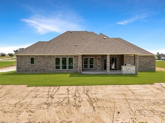 Located in a gated community, this custom designed 4 bedroom, 3 bath home offers the perfect blend of modern farmhouse charm and luxury finishes. Set on 2 acres in highly sought after Brock ISD. The open concept layout features soaring ceilings, wood beam accents, and an abundance of natural light. The living area boasts a striking floor to ceiling fireplace wall with built-ins, flowing seamlessly into the gourmet kitchen with an oversized island, pot filler, walk-in pantry, and custom cabinetry. The dining area showcasing panoramic views of the expansive backyard and opens to a covered patio with an outdoor kitchen ideal for entertaining. Retreat to the private primary suite with a spa inspired bath featuring a freestanding tub, walk-in shower, dual vanities, and a massive custom closet. Additional bedrooms are generously sized, with designer baths and a split floor plan offering privacy for guests. A mudroom, oversized laundry with built-ins, and 3-car garage adding functionality to the luxury. Enjoy peaceful country living with modern amenities, all within minutes of schools, shopping, and dining.