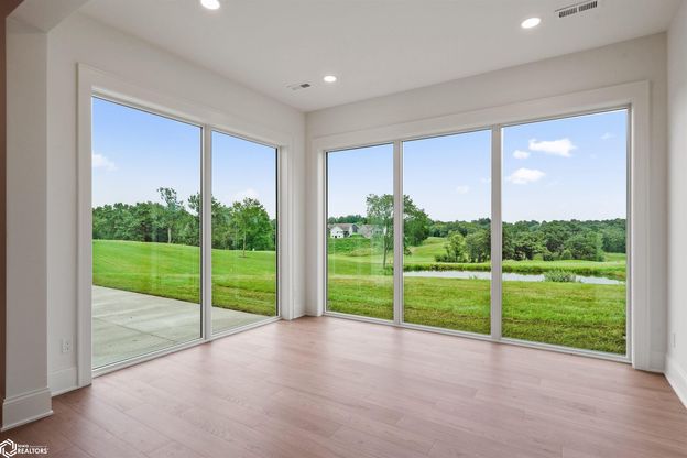 Experience Luxury living on the Bos Landen Golf Course! Timeless elegance, modern comfort, and unmatched craftsmanship is what you will find at 550 Harvest Road in Pella, Iowa.This custom-built estate was inspired by designer Shea McGee’s home and is positioned on a cul-de-sac with 1.27 acres backing up to the 15th hole of the competition course Enjoy views of rolling hills, pastures, and vibrant golf life. Inside, architectural drama meets refined detail with soaring 10’ ceilings leading into a 27’ vaulted great room featuring custom trusses, a 72” chandelier, cast-stone fireplace, and expansive Pella Impervia windows framing beautiful views. Antique pocket doors, restored by a local artisan, bring warmth and character into the modern design. The gourmet kitchen offers quartz countertops, unlacquered brass fixtures, a dual-fuel range with pot-filler, and a walk-in pantry with garage pass-through for convenience. With 5 bedrooms and 4.5 bathrooms, including a private mother-in-law suite, dedicated fitness room and a fully finished lower level with wet bar and second fireplace, this home provides over 5,500 sq. ft. of thoughtfully designed living space. Additional features include dual-zone geothermal HVAC, EV charging, a 40’ driveway with tuck-under garage, and landscaping prepared for a future 24’ pool. Conveniently located near Lake Red Rock and downtown Pella, this home offers exceptional quality and a lifestyle of timeless beauty. Schedule your private tour today!