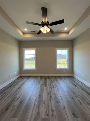 Welcome Home to this new construction 3 bedroom, 2 bath home in Greystone. The navy cabinets in the kitchen are stunning along with the quartz and stainless steel appliances...it's the perfect combination! There are 6 double windows on the back of the house to bring in all the natural light. And with a vaulted ceiling and floor to ceiling fireplace in the great room you will want to cozy up and never leave your home! The primary bed has trey ceilings, and the en suite bath features a double vanity with quartz countertop, tile shower and separate water closet, and generous walk-in closet. This is a split bedroom floor plan and has LVP throughout for easy maintenance and upkeep. The absolute perfect place to call home!