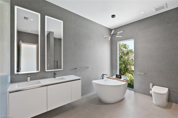 Newly built exquisite modern contemporary masterpiece is now being offered for sale in the heart of Marco Island, Florida. Spacious, open floor plan 5 bedroom and 5.5 bathroom two story luxurious property situated within walking distance from fine dinning, shopping, entertainment, boating and beaching. Each bedroom has it's on bathroom, as well as, powder bath for the quests and visitors. High end quality built home is built up 3 feet higher than FEMA requirements and has impact widows and doors throughout out entire property, therefore you do not have to worry about possible mother nature unpleasant surprises and will always be safe and sound ! This home truly stands out amongst it's competitors with functional open floor plan, quality craftsmanship, elegant, classy and tasteful design, color scheme selections, high end appliances, floor to ceiling window, fabulous indoors and outdoors living combined together, with a large entertainment, relaxation and BBQ area for the outdoors kitchen next to the lap pool surrounded by lush landscaping and lot's of privacy, while facing everyones favorite Southern sun exposure in the back, which gives you the most amount of sun throughout out the day !
