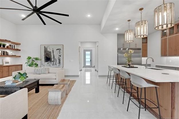Stunning New Construction home in prime mid-town location. Welcoming & bright 2-story entry w/ windows above the entrance to 2nd story. Tiled floors throughout first floor. Great Room w/wall of floor-to-ceiling windows, fireplace flanked by open shelves and cabinets below, & open to Kitchen w/large walnut island, w/ pop-up outlets in quartz counter & 3 pendant lights above. Pantry w/sink, 2nd refrigerator, oven & microwave. Spacious Dining area w/attractive brass chandelier, wood trimmed wall and patio access. Main Bedroom w/double recessed tray ceiling & Bath w/free-standing tub, curbless walk-in shower, 3 vanities, & walk-in closet w/built-in chest. Laundry w/sink, desk area, & abundant storage. Powder Bath, Office, & Mud Room. Upstairs features 3 spacious Bedrooms, 4 Baths, Game Room, & huge Flex Room which could be a 5th Bedroom.