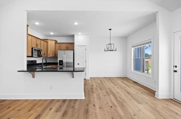 Brand new 4 bedrooms, 2 bath home with granite countertops, LVT flooring throughout, vaulted and tray ceilings, and an open kitchen/dining/living layout. Features include a master suite with walk in shower and double vanity, guest bath with double vanity, full appliance package (fridge included), blinds, laundry room, deck, and 2 car garage. Move in ready! Harmony Landing features community amenities such as pickleball and basketball courts, pavilions, and playground! Seller is a Licensed KY real estate agent.