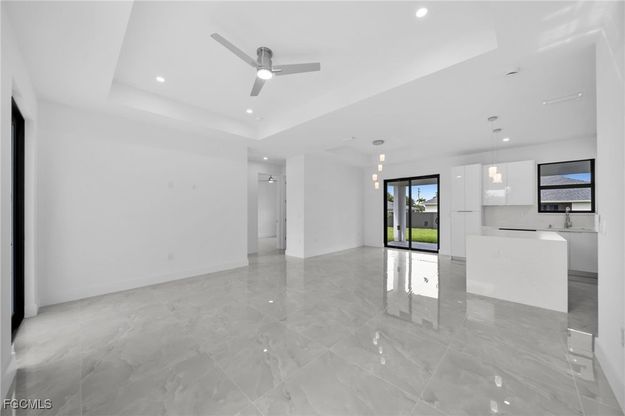 Brand New Construction in NE Cape Coral, FL Welcome to your dream home! This stunning new construction house in the highly sought-after NE area of Cape Coral offers everything you need for comfortable and modern living. With 3 spacious bedrooms and 2 luxurious bathrooms, this home is perfect for families, retirees, or anyone looking for a beautiful new place to call home. Situated in a non-flood zone, providing peace of mind and significant savings on insurance costs, and equipped with impact windows for added safety and energy efficiency. Elegant porcelain flooring extends throughout the entire home, creating a cohesive and sophisticated look. Open-concept living area perfect for entertaining and family gatherings. Gourmet kitchen with quartz countertops, modern appliances, ample cabinet space, and a convenient breakfast bar. All lights are LED with modern switches, enhancing the contemporary feel of the home. Large master suite with an en-suite bathroom featuring a double vanity and a walk-in shower. Two additional bedrooms with ample closet space and natural light. Tiled lanai and front porch, perfect for enjoying the beautiful Florida weather. A giant 72-inch ceiling fan on the lanai ensures comfort while you relax outdoors. The builder is highly motivated to sell and offers assistance with closing costs, making this an even more attractive opportunity for buyers. Attached is a two-car garage for convenience and additional storage. Beautifully landscaped yard, ready for your personal touch. Don't miss out on this incredible opportunity to own a brand-new home in a fantastic location.
