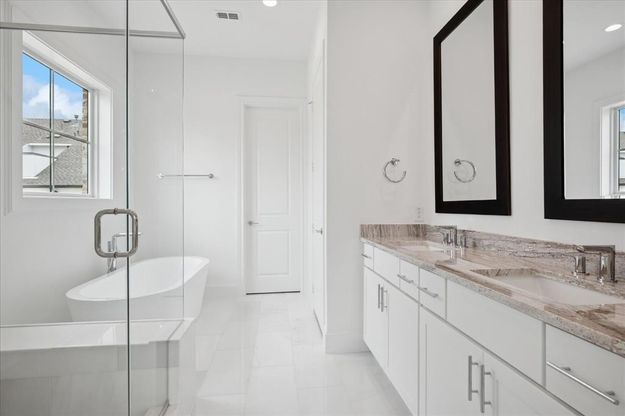 RECEIVE $15,000 INCENTIVE! NEW MOVE IN READY LUXURY TOWNHOME IN ADDISON! Discover this one-of-a-kind 4-story, 2,795 SF townhome designed for modern living with a unique open floorplan, soaring 12-foot ceilings, and expansive Anderson windows filling the home with natural light. Featuring 4 bedrooms, 4.5 baths, and a 2-car garage with electric car plug. This home combines elegance with everyday convenience. Step inside to all wood floors and custom wood trim detailing throughout. The gourmet kitchen is a chef’s dream with modern double stacked, furniture grade soft-close cabinetry, upgraded Fisher & Paykel appliances, stunning quartz countertops, and a large island perfect for entertaining. Retreat to the spacious primary suite with a spa-inspired bath boasting marble floors, walk-in shower, freestanding soaking tub, and oversized walk-in closet. The 4th level is an entertainer’s dream—featuring a game room, private guest bedroom, and an 8-ft sliding glass door opening to a large roof deck with breathtaking sunset views. A covered balcony and a tranquil park view complete this luxury lifestyle. Finished garage with epoxy paint and convenient electric 220 car charger outlet. ELEVATOR CAPABLE PLAN with stacked closets on all 4 levels. Located in the heart of Addison, this home offers unmatched convenience—steps from the Addison Athletic Club, just 1 mile to the North Dallas Tollway, minutes from Addison’s Restaurant Row, DFW Airport, Love Field, Galleria Dallas, and Legacy West. Don’t miss this rare opportunity to own a move-in ready townhome in one of DFW’s most desirable urban communities! LOW $145 per month HOA.