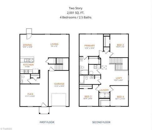 The Shenandoah from our Freedom Series combines functional design with ample space, making it perfect for families of every size. This 2-story home offers 4 bedrooms, 2.5 bathrooms, a spacious loft, and 2,001 square feet of living space. Step inside and you'll first discover a flex room, ideal for a home office, play room or a hobby space. Continuing down the hallway, a conveniently located half bath provides added ease for guests. At the heart of the home, the open concept kitchen, complete with an island, overlooks the dining area and family room, creating the perfect setting for family time and entertaining. The staircase, located across from the kitchen, provides access to the upper level. The upper level features a private primary suite with an ensuite bathroom and walk-in closet, 3 secondary bedrooms, and a full bathroom. A spacious loft is perfect for a game room or cozy retreat. This home is approximately 2 miles from the new Purina Plant. Photos for illustrative purposes only.