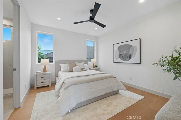 Welcome to this breathtaking new Modern beach home, where high-end finishes meet an open & bright floor plan in an A+ location. Nestled in the highly sought-after tree section, just a short stroll from the beach, parks, & Manhattan Village Mall with shops & eateries. As you step through the front door, you are greeted by an expansive open floor plan that seamlessly flows from the great room to the kitchen & family room to the spacious backyard with patio, making it an entertainer’s paradise. The inviting great room features custom built-in cabinetry, 2-story soaring ceiling, powder room, & main floor en-suite bedroom. The Chef’s kitchen is a culinary dream, boasting an expansive porcelain center island with breakfast bar seating, top-of-the-line stainless-steel Thermador appliances including a 6-burner stove with griddle and double oven, 60” fridge & freezer, 24” wine tower fridge that holds approximately 92 bottles, microwave drawer, & rift oak soft closing cabinets & drawers. Off the kitchen is the family room with fireplace, built-in custom cabinetry, & wired for surround sound. From the family room you can access the turfed backyard & patio with tongue & groove wood ceiling, infrared ceiling heater, perfect for alfresco dining during any season. Upstairs, you will find four luxurious ensuite bedrooms and a well-appointed, big laundry room with deep sink, and custom cabinetry. The sun-drenched master suite features a vaulted tongue & groove wood & beam ceiling, sliding glass doors opening to a balcony, and a custom walk-in closet with built-in cabinetry. The spa-like master bathroom includes dual sinks, & a separate soaking tub, an oversized shower with 3 shower heads. Additional amenities include French white oak 9.5” wide plank flooring, 8-foot doors, dual zone A/C and heat, solar panels & back-up battery, central vacuum system, wired for data (Cat6), wired for sound, windows prewired for automatic window coverings, low maintenance landscaped front & backyard, epoxy garage floor, 2-car garage, & car charger.