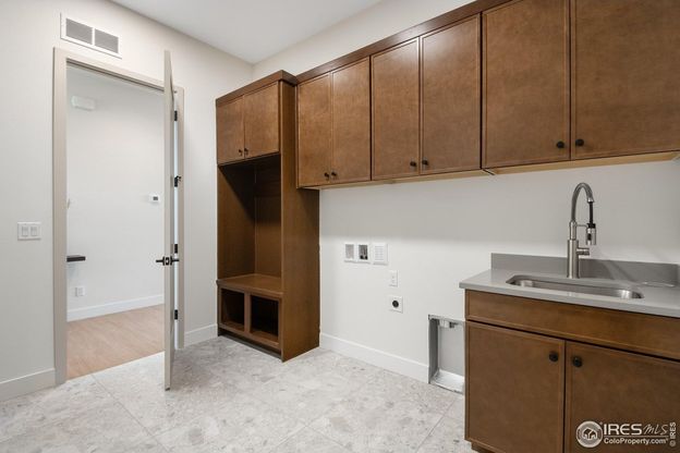 Available this fall in Greenspire at Windsor Lake, the Quandary offers the ease of single-story living on a spacious corner lot with a 3.5-car garage, a finished basement, and a covered patio. Just steps from Windsor Lake trails and downtown, it combines modern design with the best of Windsor living. Release your inner chef in the gourmet kitchen featuring custom alder cabinetry that extends to the ceiling with stacked uppers, veined quartz counters, and brushed brass accents. An oversized island with prep sink creates the perfect gathering spot for meals or entertaining. The open-concept main floor is centered around a stone fireplace, bringing warmth and a natural focal point to the space. The primary suite is its own retreat with a freestanding tub, dual shower heads, and brass fixtures for a spa-like experience. Everyday conveniences include a mudroom, built-in laundry cabinetry, and a laundry sink. The finished basement is designed for connection and versatility, with two bedrooms, a full bath, and a spacious rec room that can host game nights, guests, or a home gym. A moody bar with dark cabinetry, brass hardware, and a sleek backsplash sets the scene for a nightcap or evenings of entertaining. Professional front yard landscaping and fencing complete the home, so all you need to do is move in and enjoy Windsor Lake and downtown Windsor just outside your door. Schedule your private showing today and see why Greenspire is one of Windsor's most loved neighborhoods.