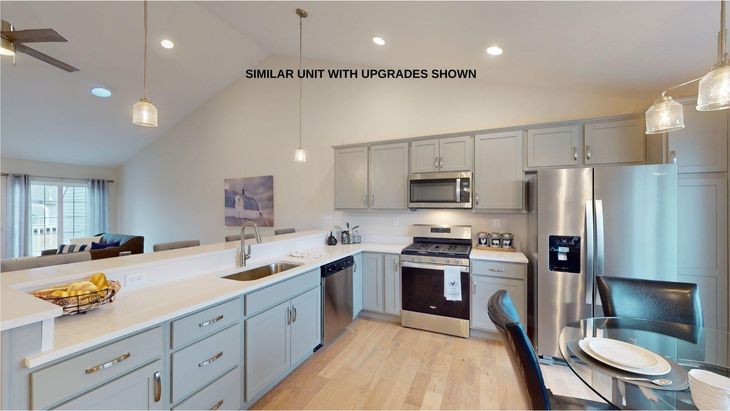 Welcome to Pleasant View Farm, a new community with 166 two-bedroom, two-bath, two-car garage condominiums on over 200 sprawling acres. The split-level style floor plan is designed with a spacious open concept living/dining/kitchen area, making it ideal for entertaining. This unit has been thoughtfully curated by our team, and will be move-in ready by end of January of 2026. Kitchen features stainless-steel Whirlpool appliances (range, microwave, dishwasher), quartz countertops, Kemper soft-close cabinets, pantry roll-out drawers, 21" cabinet roll-out drawers and vaulted ceilings. Engineered hardwood floors throughout main area and bedrooms, gas fireplace with double sliders leading to your maintenance-free 22x12 deck, and first floor laundry are all part of this sought-after floor plan. The primary suite has two closets, and the primary bath features a walk in shower, oversized linen closet, dual vanity and ceramic tile floors. The lower level has the upgrade option to be finished for an additional 797 sq. ft. of living space. Community amenities include a community center with fire pit, community garden, walking trails leading to the Rockingham Recreational Trail, and an RV/boat storage lot. Pleasant View Farm is easily accessible to all major highways, schools, shopping, and area attractions. Travel to the lakes, mountains, beach, or Boston in under 90 minutes. Pictures are of similar unit.