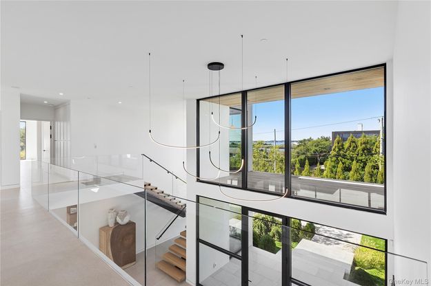 Perfectly positioned south of the highway in Bridgehampton, this architectural showpiece sets a new benchmark for modern Hamptons living. Designed by McDonough & Conroy and brought to life by Hampton Builders, Inc. and Fineo Development Group, the residence blends sophisticated design with effortless functionality. Interiors curated by Leslie Norton Fineo of LNF Interiors and landscape design by Dean Gomolka enhance the home’s clean aesthetic, with Chris Mead of English Country Home completing the vision through expert staging. The exterior presents a refined palette of limestone, stucco, and custom mahogany siding, while walls of glass frame sweeping views of the ocean, bay, and Mecox Pond. Inside, 7,800± square feet of living space are arranged with an open, modern flow—bathed in natural light and curated with meticulous attention to detail. The main level centers around a stunning chef’s kitchen with dual islands, marble finishes, and top-tier appliances, complemented by a separate catering kitchen. Expansive living and great rooms feature dual-sided fireplaces, seamlessly connecting to the outdoor entertaining spaces. A formal dining room, en suite guest suite, junior primary with terrace, mudroom, and pool cabana with full bath complete this level. Upstairs, the primary suite is a true retreat, offering a private sitting area, spa bath, oversized custom closet, and a private terrace. Three additional en suite bedrooms, a second laundry, and rooftop access expand the lifestyle offerings, where an expansive roof deck affords panoramic ocean-to-bay vistas. Outdoors, the amenities are equally exceptional: a 20' x 40' infinity-edge heated gunite pool with in-pool spa, an outdoor kitchen, and sun-drenched patio framed by lush landscaping. A three-car garage and a private 0.92± acre cul-de-sac setting complete this estate. Just moments from world-class beaches, vineyards, and Bridgehampton’s premier shopping and dining, this residence is a rare opportunity to own a south-of-the-highway sanctuary that blends cutting-edge architecture with timeless Hamptons luxury.