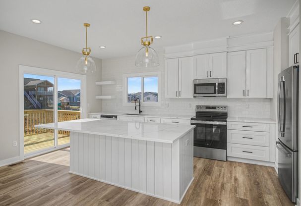 Introducing the Blaze 3 floor plan, with 1646 sq. feet and built by Gladiator Homes. This 3BR, 2.5 bath home is packed with style and amenities you won't find in other new construction homes in this price range. Each Gladiator Homes floor plan has been thoughtfully designed to maximize the living spaces; let's take the kitchen for example, no more 'tiny kitchens' and 'tiny dining areas'. The Blaze features an incredible kitchen with floor to ceiling cabinetry and 8-foot center island that seats 6 people! Soft close drawers, stylish kitchen faucet, cabinet hardware, super single/deep sink and quartz countertops! You'll also love the 6' X 5'2'' walk-in pantry! Upon entering from the garage you'll be able to hang your jacket/personal belongings at the built-in locker system and turn the corner to experience the grand and open great room with hard surfaced flooring, 9' foot walls, and a spacious living room with electric fireplace. The windows on the backside of this home flood the space with natural light! The primary suite is 15'6'' X 14'5'' and boasts a trayed ceiling and ensuite bathroom with walk-in closet. The remaining two bedrooms don't lack in amenities either...stylish ceiling fans and door hardware, ample closet space, and large windows. This home has a 3-car garage. Lower level can be finished for an additional $29,000. Gladiator Homes....Experience the Difference.