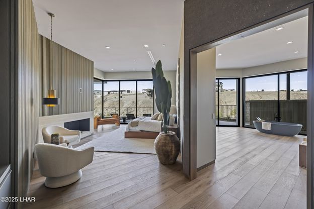 Discover the pinnacle of modern desert living in this brand-new custom residence in the exclusive Wren Cove enclave of Lake Havasu's Riviera. This 4-bedroom, 4.5-bath masterpiece blends sleek architectural design with resort-style amenities, offering the ultimate balance of luxury and lifestyle. Highlights include a chef's kitchen with Miele appliances and custom cabinetry, a glass-enclosed 500-bottle wine room, and seamless indoor-outdoor living spaces that open to a private pool retreat. The spa-inspired primary suite boasts a steam shower and sauna, while cutting-edge Crestron home automation ensures effortless control throughout.