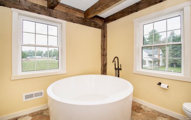 Looking for a home with a story to tell? Welcome to 115 E. Wolcott Street in Wolcottville, where 19th-century history meets 21st-century comfort. This one-of-a-kind timber-frame home was originally built around 1844 by one of Elkhart County’s earliest Amish settlers. Nearly 180 years later, the entire frame was carefully deconstructed in 2023 and given new life on a brand-new foundation by the renowned Levi Wickey of L&M Reclaiming. The result? A home that looks like it’s stepped out of history but lives like it was built yesterday. Step inside and you’re greeted by hand-treated, exposed timber beams and reclaimed wood paneling set exactly as it was in the original home—horizontal on exterior walls, vertical on interior walls. Narrow red oak floors, salvaged and re-milled from the original house, shine beneath your feet and pair beautifully with antique doors and maple stair treads. The distressed alder cabinetry in the kitchen, made by Clear Waters Cabinetry, is warm and inviting, complemented by custom countertops from Countertops Plus. On a chilly evening, you can cozy up by the Jotul wood-burning stove, which anchors the main living space with a rustic yet refined glow. Every detail blends heritage with modern ease. The main-floor bath features a corner shower for convenience, while the upstairs bath boasts a luxurious Japanese soaking tub, perfect for unwinding. A charming primitive corner cabinet just outside the main bath offers a nod to simpler times with a practical twist. Behind the historic beauty is a solid new build. You’ll find thermally modified southern yellow pine siding from Arbor Wood Co., a new metal roof by Troyer Roofing & Remodeling with seamless gutters, energy-efficient Sunrise windows, and 1-inch closed-cell foam plus R-21 fiberglass insulation, topped with 16 inches of cellulose in the attic. The home runs on an electric HVAC system with upstairs mini-splits, and all plumbing and electrical were completed new by AJ’s Plumbing & Electric. The 12-inch concrete foundation walls were specially poured to cradle the original 12-inch sill beams and provide a 9-foot-tall basement ceiling with an exterior cellar entry by Flying Eagle Concrete. Add in reclaimed red oak flooring, a Berber-carpeted den, porcelain-tiled baths, and you have a home that’s as warm and welcoming as it is historic and efficient. This is more than a place to live, it’s a chance to own a living piece of Indiana history, beautifully rebuilt for today’s lifestyle.