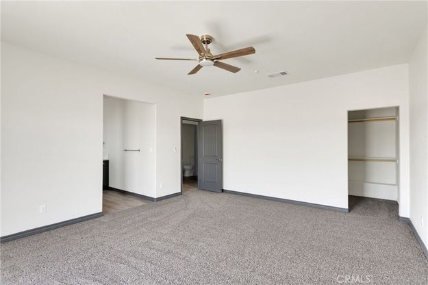 Welcome to your modern desert retreat in Pinon Hills. This brand-new, energy-efficient 4-bedroom, 3-bath home offers 2,100 sq. ft. of contemporary living on a fully fenced 1.87-acre parcel with flat, usable land. Located on Rosado Road—less than 300 feet from paved Duncan Road—this home combines peaceful rural living with easy access to Highway 138, Snowline School District, local shopping, and Wrightwood mountain recreation. Inside, the open-concept layout showcases a clean, modern palette with contrasting dark trim, luxury vinyl plank flooring, and plush bedroom carpeting. The chef’s kitchen features gray cabinetry, soft-close drawers, custom quartz counters, and coordinated finishes carried through the bathrooms, hallway, and laundry room. The primary suite includes a spa-inspired bathroom with a custom tile shower and a walk-in closet with built-in shelving and a dedicated shoe rack. Energy-efficient upgrades include dual-pane windows and sliders, a 5-ton HVAC system, solar panels, full Title 24 compliance, and radiant barrier roof insulation. An oversized 3-car garage with extra depth provides room for trucks, toys, or a workshop. The expansive lot offers plenty of space for RV parking, horses, or future additions. Additional features include a covered front porch, barn-style interior doors, and modern designer finishes throughout. This is new-construction acreage living at its best—privacy, views, and convenience all in one of the High Desert’s most desirable areas.