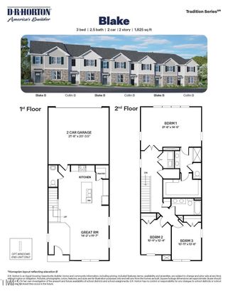 Come tour the Blake at 935 Sculptor St., Wendell, NC, 27591 at The Townes at Anderson Farm. The Blake floorplan offers three bedrooms, two and a half bathrooms and 1,825 sq. ft. Downstairs you will find a large kitchen with an island and pantry plus a large living room and 2 car garage! Upstairs you will find three bedrooms, including a huge primary bedroom and bathroom. The two secondary bedroom are served with another bathroom with dual bowl vanity. As always, a D.R. Horton home is built with quality materials, with superior attention to detail & impeccable workmanship. The home comes with a one-year builder's warranty & a ten-year structural warranty. Move In package includes Refrigerator, Washer, Dryer and Blinds! Your beautiful new home will come equipped with a smart home technology package which includes an Qolsys IQ Panel, a Honeywell Z-Wave thermostat, a Kwikset Smart code deadbolt, a Video doorbell, Smart Switch front porch light all at the front door. One Amazon Echo Pop will be installed by a division of ADT Safe Haven. The technology allows homeowners to monitor & control their home from the couch or across the globe. Enjoy the planned future community amenities such as the pool and cabana, playground, and walking trails, plus more to come. Anderson Farm is uniquely positioned to take advantage of all Wendell has to offer. A 5 minute drive from both Wendell Falls and charming Downtown Wendell *Photos are for representational purposes only.