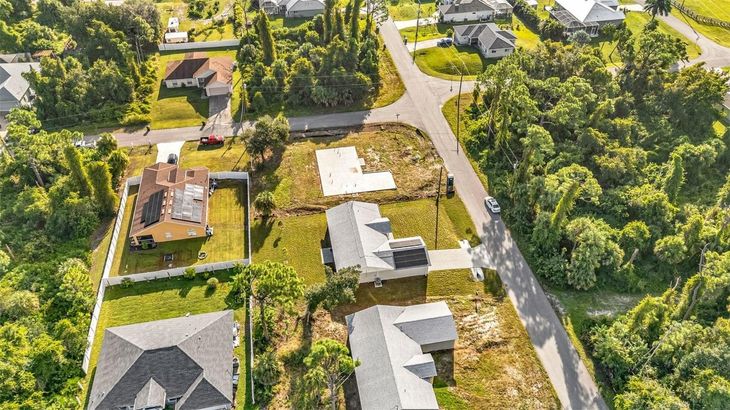 One or more photo(s) has been virtually staged. Solar-Powered, Energy-Efficient SIP Home – Modern Florida Living! This brand-new 3-bedroom, 2-bath home with a den/office and 2-car garage is not your traditional block or wood-framed home. Built with Structural Insulated Panels (SIPs)—a high-performance system featuring an insulating foam core and cement board exterior—this home can withstand winds up to 200 mph. SIPs are fire-resistant, self-extinguishing, non-toxic, and resistant to mold, corrosion, and termites, offering exceptional durability and energy efficiency. Step inside to a light and bright open split floor plan featuring luxury vinyl plank flooring, quartz countertops, and stainless steel appliances in the stylish kitchen. The den with barn doors provides the perfect flex space for an office for guest room. The primary suite offers a walk-in closet and ensuite bathroom with dual sinks and a walk-in shower, while the guest bedrooms are generously sized for comfort and versatility. Enjoy year-round savings with energy-efficient Low-E windows and your solar panels included with the house. Outside, the large backyard is a blank slate to create your own outdoor oasis. Conveniently located near shopping, dining, I-75, and CoolToday Park, this non-HOA home in an X flood zone means no flood insurance required and the freedom to live your way. Combining cutting-edge construction with modern finishes, this North Port home sets a new standard for comfort, sustainability, and durability.