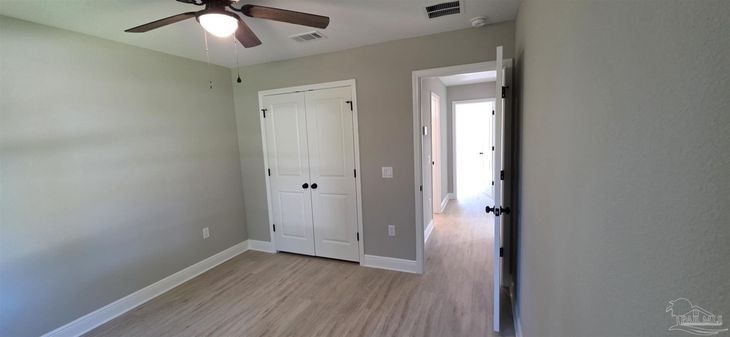 Brand-New Lakefront 4BR/2BA, 1,948 SF brick home—welcome to 255 W Kingsfield Rd in Cantonment. The single-story floorplan blends open living with peaceful outdoor spaces: the covered back porch looks out over Griffith Lake, offering relaxing water views right from home. Inside, the great room opens to a spacious kitchen with wood shaker cabinetry, quartz countertops, a large prep island, pantry and a stainless appliance package (included). A split bedroom layout places the private primary suite at the rear with walk-in closet and dual-sink bath. Three additional bedrooms share a full hall bath. Everyday conveniences include a dedicated laundry room and an attached 2-car garage. Quality finishes, efficient construction, covered front and rear porches, and a central location make this new construction a standout. 4 bedrooms / 2 baths / 1,948 SF /.87 Acre