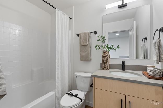 Unbelievable value at Mountain View Townhomes in Garden City, Idaho—offering modern, low-maintenance, lock-and-leave living near downtown Boise without the downtown price tag. Located just minutes from the Boise River Greenbelt, local breweries, coffee shops, and the best of Garden City and downtown Boise, this quiet community sits directly across from the future professional soccer stadium and new park at Expo Idaho. This beautifully designed two-bedroom, two-bath townhome features an open-concept kitchen and living area with granite countertops, Grayloch custom cabinetry, luxury vinyl plank flooring, and a private balcony with Trex decking. The spacious 35’ tandem two-car garage provides backyard access and plenty of storage. Upstairs, enjoy two comfortable bedrooms, laundry, and elegant finishes throughout. The HOA covers landscaping and snow removal, giving you more time to enjoy the community patio, outdoor fitness area, and the vibrant Boise lifestyle right outside your door—ideal for first-time buyers, investors, or anyone seeking affordable new-construction homes near downtown Boise.