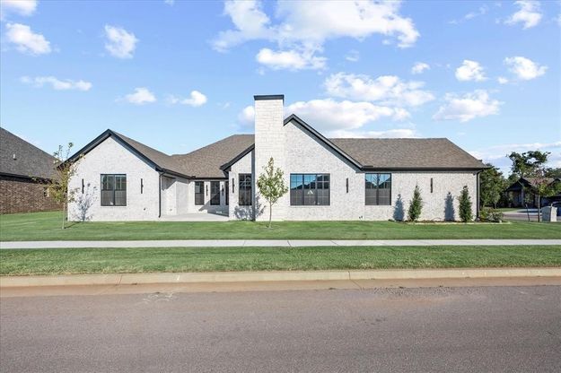 Anything but cookie-cutter — this custom-built home blends transitional design with thoughtful details at every turn. From Visual Comfort lighting to white oak wide-plank wood flooring, each element was chosen for timeless style and everyday livability. The entrance reception area offers storage with enhanced privacy & security, but keeps guests from seeing in to your everyday living spaces. The open-concept living and kitchen space is filled with natural light from a wall of windows and triple-slider glass doors that extend the room outdoors for seamless entertaining. The kitchen centers around a massive island and features soft-close cabinetry, deep drawers, and a dream-worthy walk-in pantry with LED backlighting and built-in appliance storage. The primary suite is a true retreat — complete with a morning bar, sink, and drink fridge that open to a private covered patio. The spa-inspired bath includes a freestanding soaking tub, frameless glass shower, and an incredible custom closet with three-tier hanging and space for full-length garments. Bedrooms 2 & 3 share a Jack-and-Jill bath with generous storage, while the 4th bedroom offers flexibility as an office, guest suite, or gym, with private access to its own full bath and third garage bay — ideal for multi-generational living or independent space. The mudroom and utility area impress with a built-in pet wash, abundant storage, and thoughtful functionality. Outside, professional landscaping, accent lighting, full gutters, irrigation, and mature trees enhance curb appeal and privacy. Set on a cul-de-sac corner lot in gated Crystal Creek, this home enjoys pond views and walkable sidewalks — a rare find in a community that preserves its natural beauty. With Mustang Schools, OKC utilities, and easy access to both the Kilpatrick Turnpike and I-40, this tucked-away treasure offers elevated living with unmatched convenience.